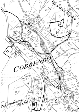 Blick von Cobbenrode zur alten Vogelstange/Vogelrute bzw. zum Papelör. So sieht das Grundstück heute aus! Genau nach 20 Jahren wurde die Vogelstange erneuert, wie aus dem Protokollbuch von 1897 hervorgeht. Verding über die neue Vogelstange von 1911, S. 205: Cobbenrode, den 19. März 1911