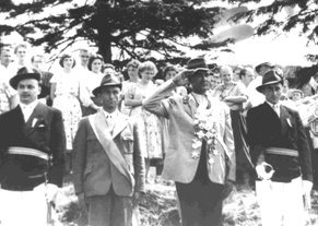 Die folgenden Fotos zeigen „die Ansicht der Vogelrute von Cobbenrode aus“ sowie die Königsproklamation von Franz Sommer im Jahre 1957.Franz Sommer sen., der neuer Schützenkönig 1957 (Klaus Hoffmann - Hubert Teipel - Franz Sommer - Josef Korte) Das Grundstück ist ein sehr schöner Platz mit Aussicht über das ganze Dorf, aber sehr wetterabhängig. Heute lautet die Straßenbezeichnung: Am Papelör; der Straßenname wurde sicherlich von „Ober dem Papelör“, der alte Bezeichnung des Bergrückens, abgeleitet. Das Gelände wurde erst nach 1960 bebaut.