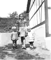 Edmund und Hugo Grobbel „mit Freundin“ neben der Giebelwand des Cobbenroder Spritzenhauses.