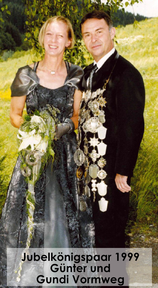 Ebenso freuen wir uns über Günter Vormweg, der 1999 die Königswürde errang und ein Jahr mit seiner Gattin Gundi an der Spitze der Bruderschaft stand.